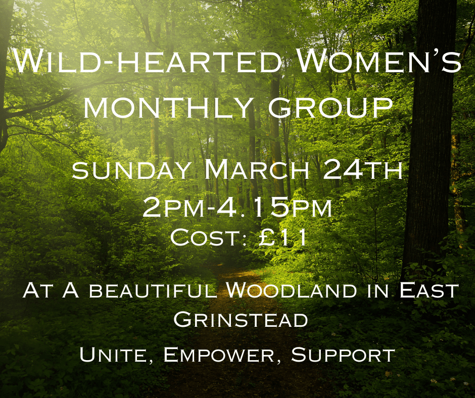 The group is a monthly outdoor women’s circle which will take place in a beautiful woodland in East Grinstead. You do not need to commit to coming to more than one group but the more regularly you come the deeper your connections will be. It is a place to meet others, talk, support and empower each other – all whilst being surrounded by the therapeutic benefit of being in nature. There is no pressure to disclose anything – you will benefit simply by being around other wonderful women.